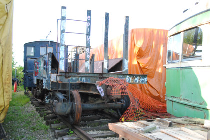 Columbus, Delaware and Marion Electric Company flat car 1002 and later Marion Reserve Power Company. It was acquired by the museum in 1966.