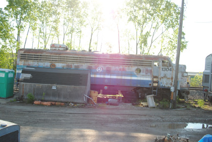 Michigan Air Line Railway Company FP7A 1304 2011, ex. COE Rail Excursion Train 1304 2011, exx. AMT (Agence Metropolitaine de Transport) 1304 2002, exxx. STCUM (Société de transport de la communauté urbaine de Montreal) 1304 1997, exxxx. Société de transport de la communauté urbaine de Montreal 1304 1985, exxxxx. Canadian Pacific 4074 1982, exxxxxx. Canadian Pacific 1430 1960, nee Canadian Pacific 4074 1955, built by Electro-Motive Division in 1952.
