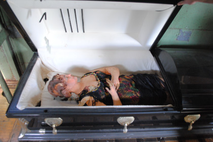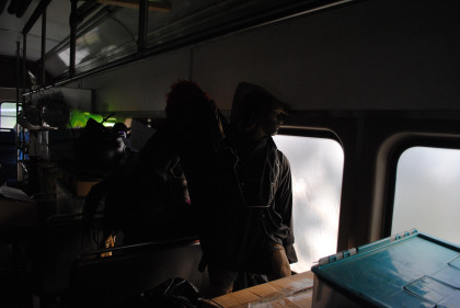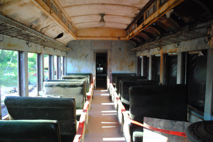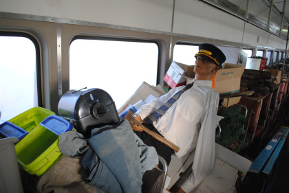The post office car had a baggage area and I opened the casket to find this lady mannequin. Next we went into the streamlined coach from Cleveland and found a few more items.