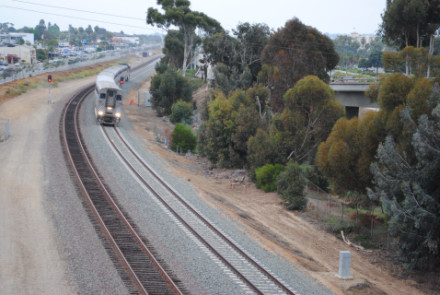 Pacific Surfliner 566 for San Diego came through CP Tecolote. After that we headed to the north bank of the San Diego River.