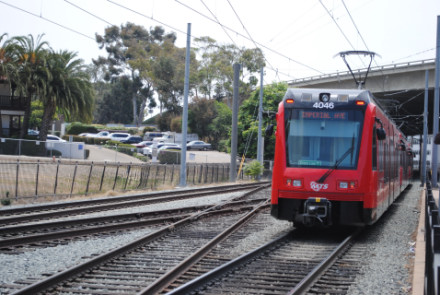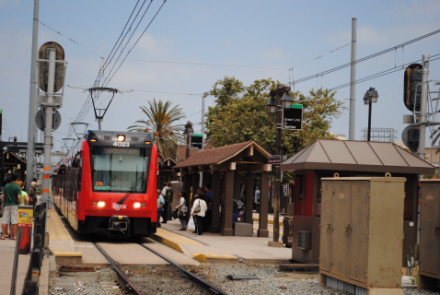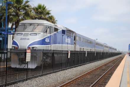 Next a Green Line Trolley for 12th and Imperial came through. Pacific Surfliner 768 was running late and arrived after I boarded my Coaster train.