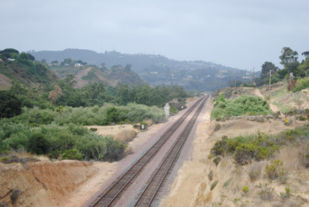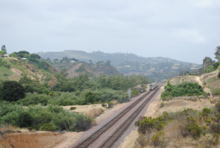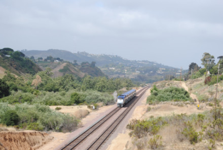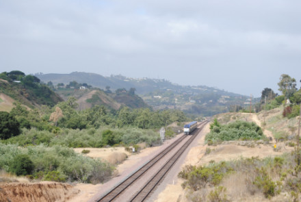 Pacific Surfliner 566 for San Diego below us at Del Mar. From here we drove to Solana Beach and I ws dropped off to go to my next photo location while Bill and Maryann went to find a bathroom at the Solana Beach station.