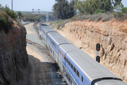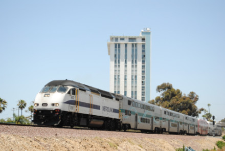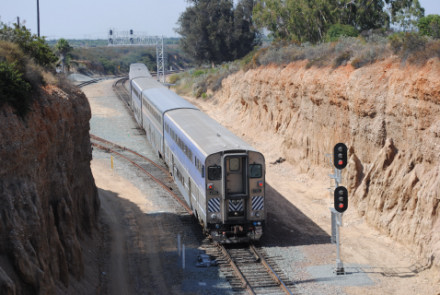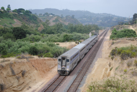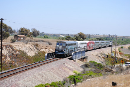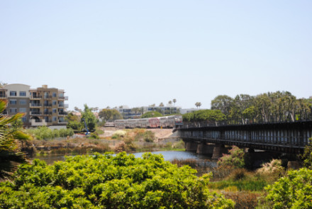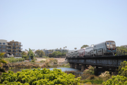 Metrolink 662 crossed the San Luis Rey River north of Oceanside.