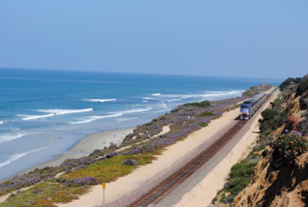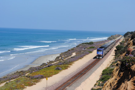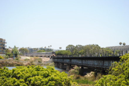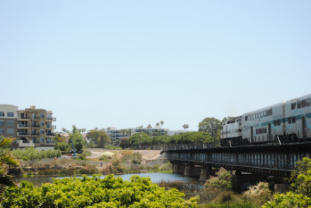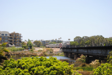 Pacific Surfliner 777 for San Luis Obispo crossed the San Luis Rey River.
