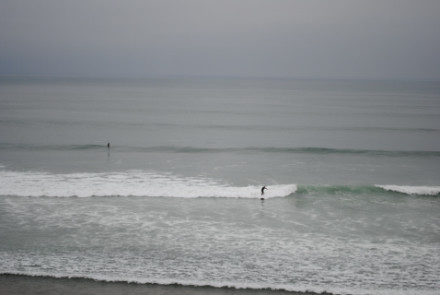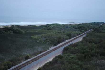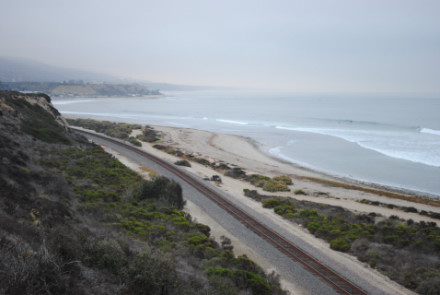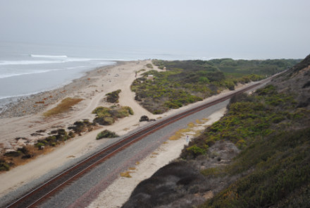 I arose at 5:10 AM and after a quick breakfast, I drove south on Interstate 5 to Cristianitos Road then turned right on El Camino Road, made a U-turn and parked the van. I followed two lady surfers to the trailhead then hiked down to old US 101 Highway to San Mateo Point and walked out to the bench, waiting for my first train of the morning.