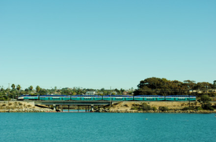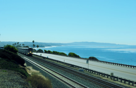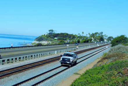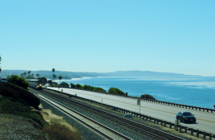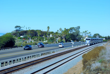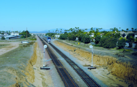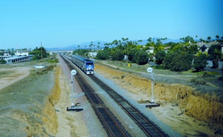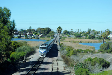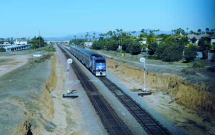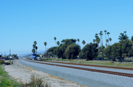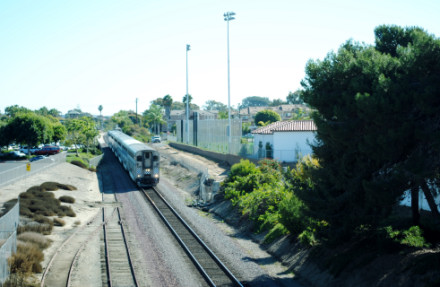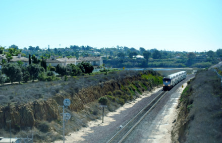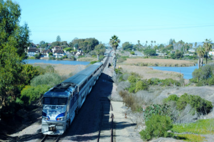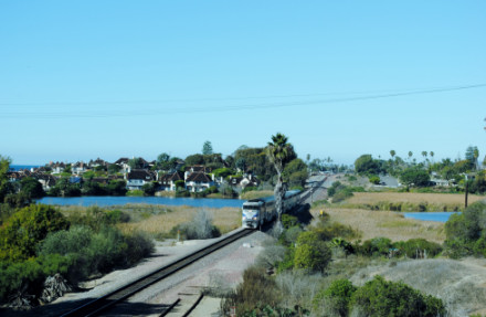 Pacific Surfliner 769 heading north to Goleta. From here we drove north to Avenida Encinas and parked on Ponto Road then walked out on the Avenida Encinas bridge.