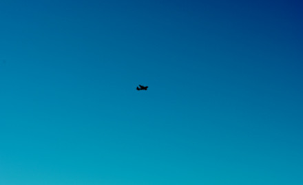 First an airplane flew overhead and next I heard a train coming down the grade.