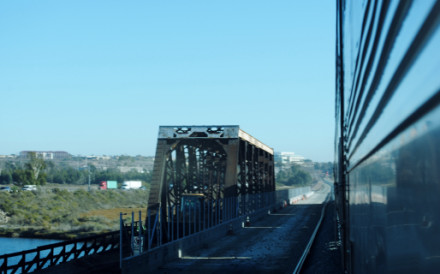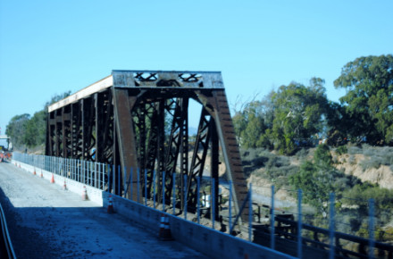 With the new bridge across the Santa Margarita River finished with one track for now, the old truss bridge has had its rails taken up and the bridge itself would be be removed. It was a quick trip to Fullerton and we detrained to wait for Winston and Christy Walker to arrive which they did a few minutes late, then joined AC and I on the platform.