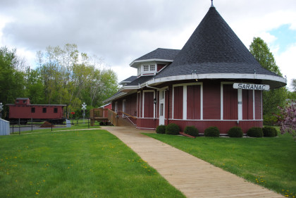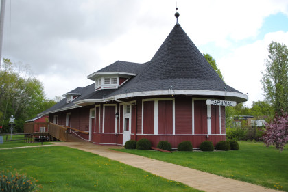 Grand Trunk Western station in Saranac built in 1917 and one of three "Witches Hat" depots on the Trunk. The others were in South Lyon and in Corunna.