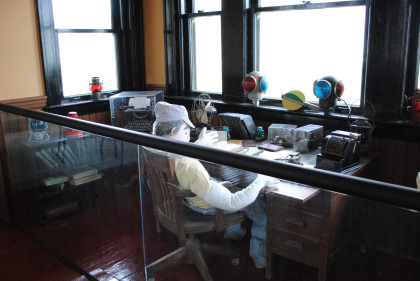 A piece of Pere Marquette 1225. This volunteer told us that everyone else had to leave due to a family emergency and that he did not have the keys to the building. I told him that was alright and that we were still enjoying our time here. It bought back all of our Train Festival 2009 memories.