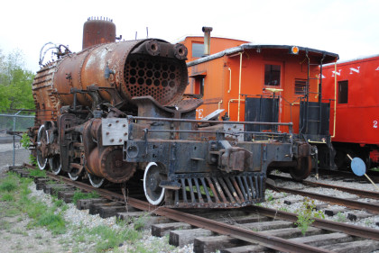 Nice wood working. From here we drove to Owosso for a pre-arranged tour to see Pere Marquette 2-8-4 1225. When we arrived there was no one in their offices so we decided to look around and try to find someone on the grounds.