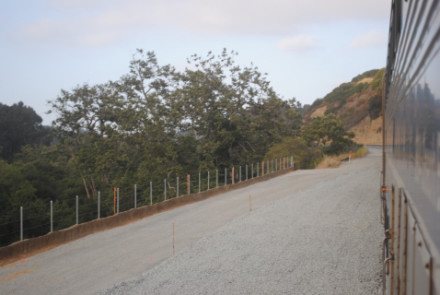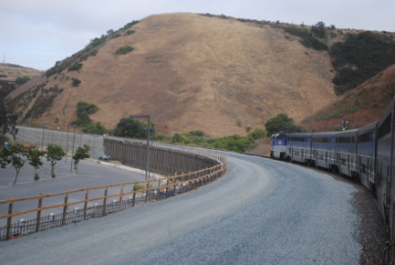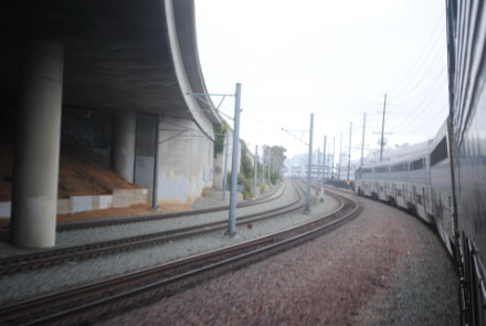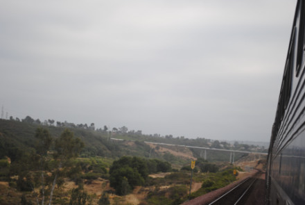 The train rolled down Rose Canyon. I returned inside but ventured back outside to see the new crossover project between CP Morena and CP Tecolote.