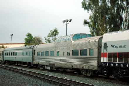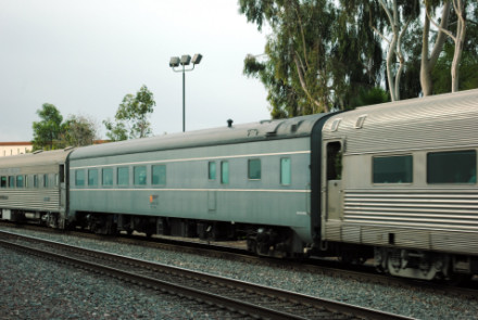 Santa Fe cocktail lounge car 1370 "Acoma" was built by Budd in 1936 and designed for the new streamlined Super Chief. It was the first, full-sized, all stainless steel, "streamlined" lounge car built for any railroad. In 1994, the current owners put the car through a multiyear renovation including new trucks, backup generator, new kitchen with a large fridge and two freezers, beautifully restored lounge and fully functional crew's quarters. It is owned by Pacific and Southwest Rail Adventures.