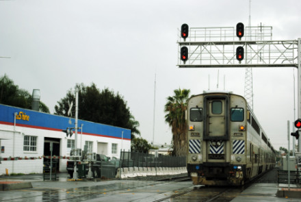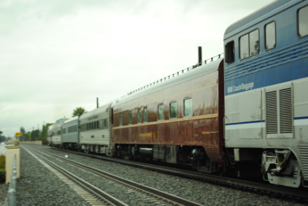 Pacific Surfliner 579 arrived and I took a seat in a Superliner coach. Everything was good until Serra where we had caught up to a very late-running Metrolink 663 and had a red signal. We were on his tail almost all the way to Irvine before we found a green signal then departed Irvine and was back at track speed almost to Santa Ana, when we came to a flashing yellow. I detrained at Santa Ana and thought I had finished taking pictures for the day.