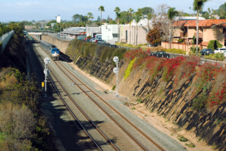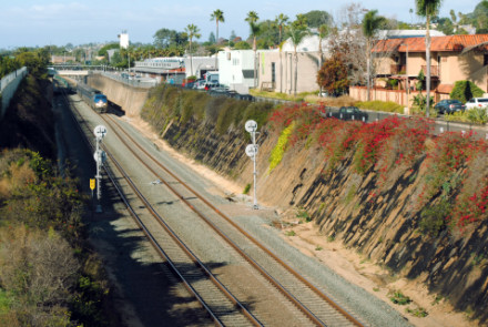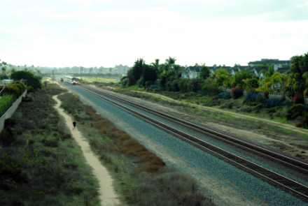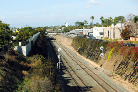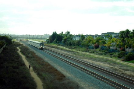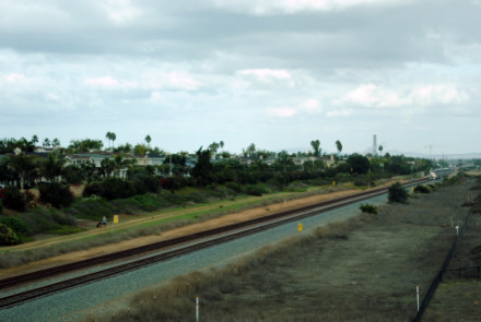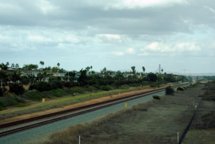 The view off Cedros bridge in Solana Beach with CP Valley below and the station in the background.