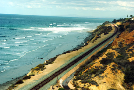 Pacific Surfliner 769 met Pacific Surfliner 564 at Ponto. From here we drove south to Del Mar where AC Adam dropped me off and I hiked out to my next photo location.