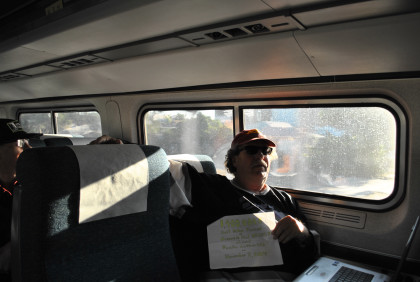 One last picture after the fact. We arrived at Oceanside and I would relax all the way back to Santa Ana one happy train rider. After the trip we met at my house and I put up the mileage on my web page before Winston, Christy and I went to the Steer Inn for dinner then returned to the house, where Winston corrected my story before we went to the Orange County Railroad Historical Society meeting. After that I drove home, ending another great day in my life.