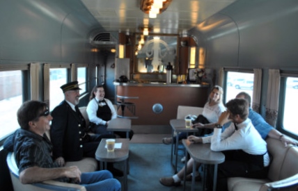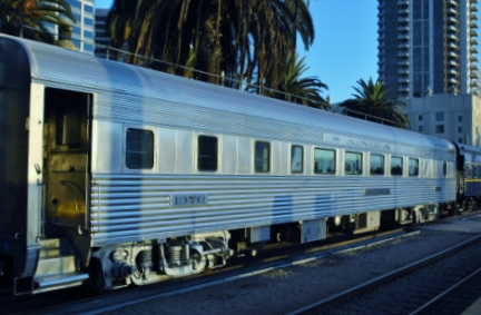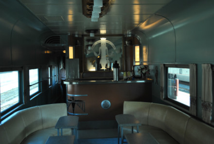 Santa Fe cocktail lounge car 1370 "Acoma" was built by Budd in 1936 and designed for the new streamlined Super Chief. It was the first, full-sized, all stainless steel, "streamlined" lounge car built for any railroad. In 1994, the current owners put the car through a multiyear renovation including new trucks, backup generator, new kitchen with a large fridge and two freezers, beautifully restored lounge and fully functional crew's quarters. It is owned by Pacific and Southwest Rail Adventures.