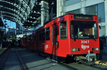 The train started the climb of the Miramar Grade. It had been an excellent southbound trip aboard the "Acoma" and after a stop in Old Town, we arrived at San Diego where I detrained then walked over to the American Plaza trolley station and bought my first San Diego Tap Card to get a trolley day pass. I boarded a Blue Line Trolley which I took to E Street in Chula Vista and on the way there, my Day Pass was inspected. I walked over to the Black Angus and a fantastic steak dinner then returned to the trolley station, tapped my card and waited for a late-running 4:14 trolley. {Thanks AC Adam for your help!} I took the trolley to San Ysidro, tapped my card again then boarded a northbound trolley back to American Plaza but had one picture to take.