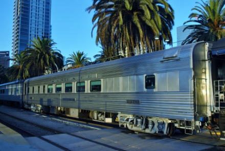 Surfliner 572 which would take me to San Diego aboard the "Acoma". I boarded and paid Bill Hatrick for the cost of "Acoma" trip today, found a table and helped Winston and Christy aboard. A couple of minutes later, we saw the Southwest Chief arrive with something on the point that I wanted to take pictures.
