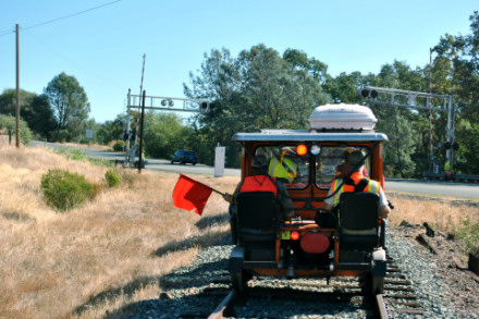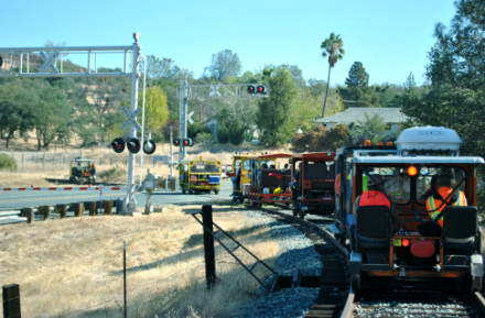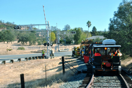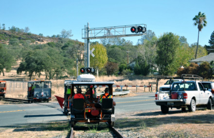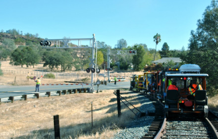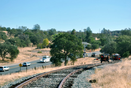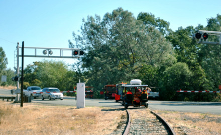 Rolling down to the next grade crossing on CA Highway 88.