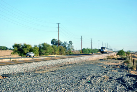 BNSF 5028 West was north of Fluhr. From here we drove through Merced, then cut over to CA Highway 140, then Santa Fe Road through Le Grand to the grade crossing. But alas San Joaquin 717 was 38 minutes late and it was getting late so we drove back to CA Highway 99 then went south to Selma, checking into the Super 8 there before having another Carl's Jr dinner and a good night's rest.