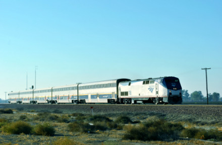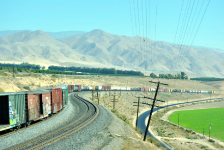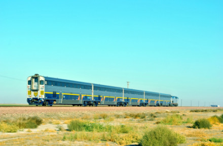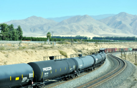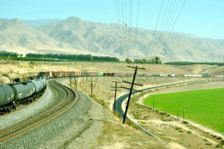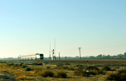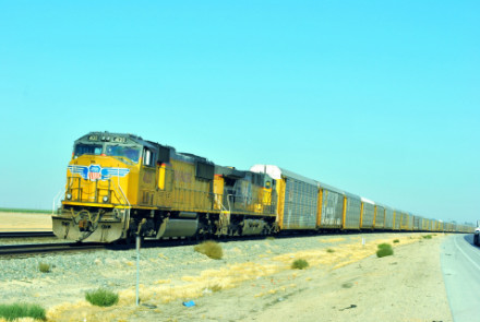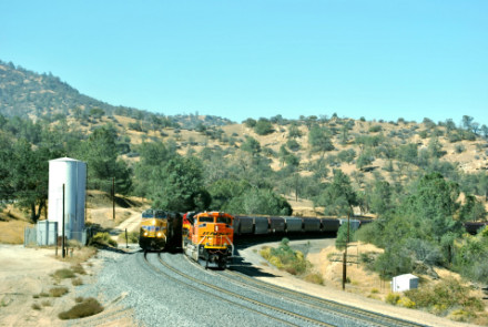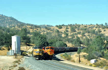 10/19/2014 We had breakfast then checked out of the Super 8 heading south on CA Highway 43 where we filled the car with petrol at the Arco along the highway then went south looking for trains. North of Corcoran we saw a headlight and stopped.