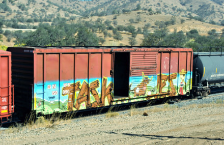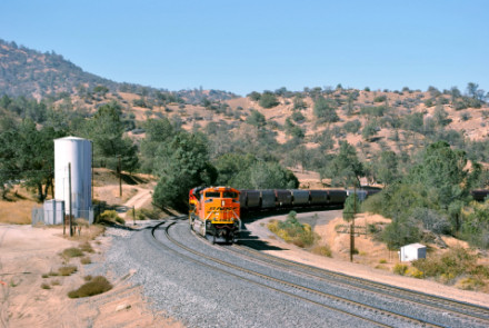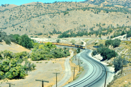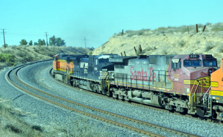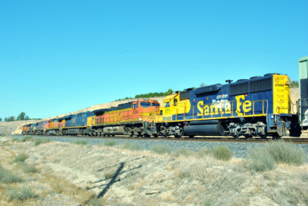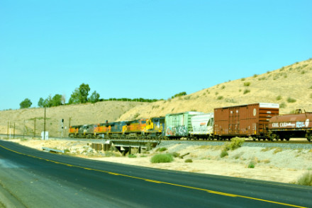 BNSF 4854 West at Bakersfield. We headed east then topped off the car with petrol before going by Sandcut then down the hill where we found the most colorful train that I had ever seen.