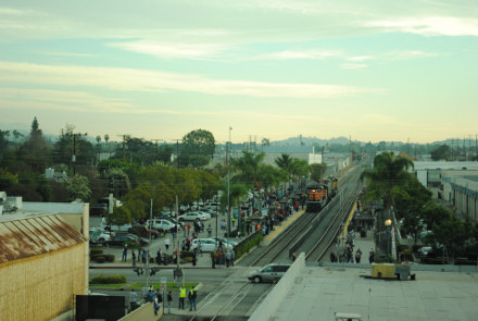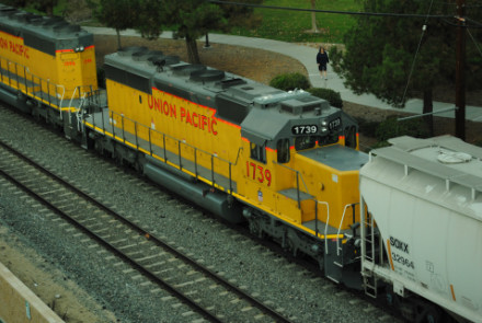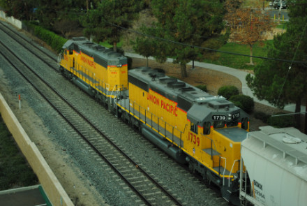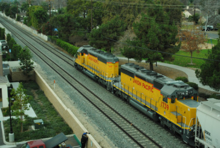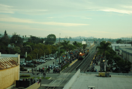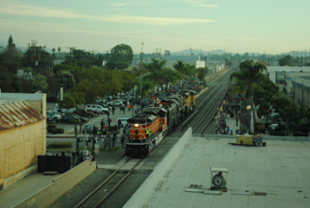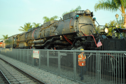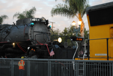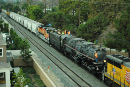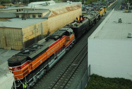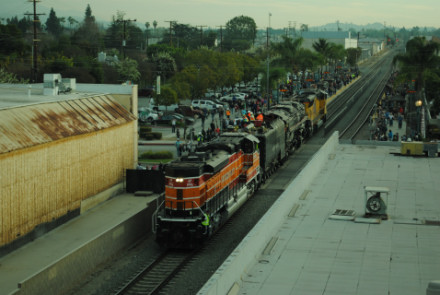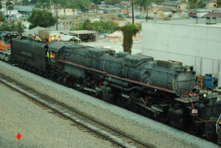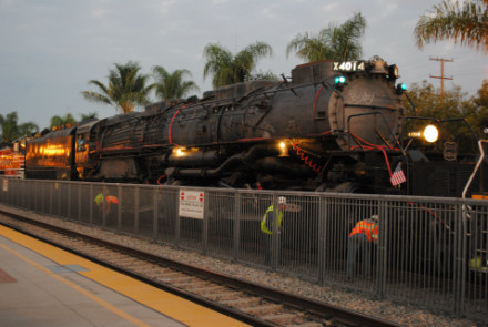 My last shot of Union Pacific 4014 at the Covina Metrolink station. I ran into Bob Riskie who came down from Bend, Oregon to see Union Pacific 4014. From here I ventured to the roof of the parking structure and waited for it to move. Chris Parker was now here and would meet me up here after the train started moving.