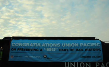 LA Metro and Metrolink made a special sign that was hung on one side of the tender.