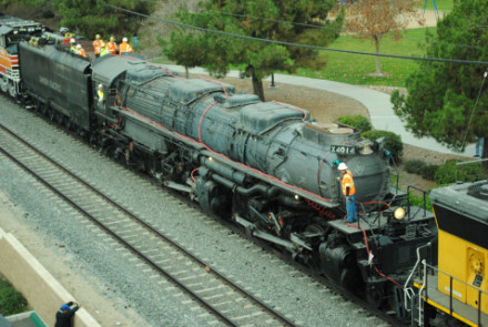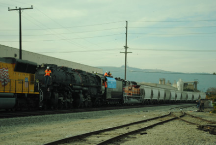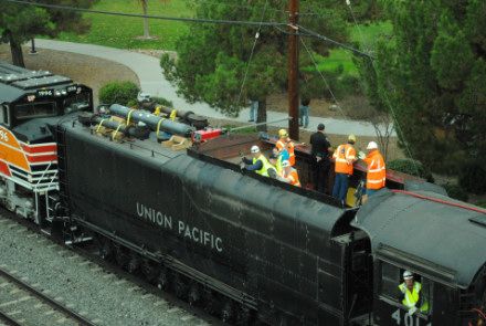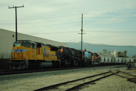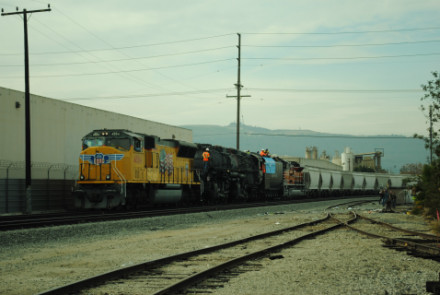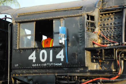 Here you can see the Union Pacific Steam Crew preparing the engine for today's trip to West Colton via Bassett.