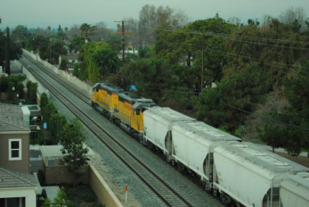 The final consist would be Union Pacific SD40N 1596 and 1739, covered hoppers SOXX 32964, SOXX 34304, TILX 33020, TILX 33435, SOXX 32950, SOXX 32259, TILX 34320, TILX 33034, SOXX 32995 and TILX 33017, Union Pacific SD70ACE 1996, Union Pacific 4-8-8-4 4014 and Union Pacific SD70M 4884. With a great view looking towards the Covina Metrolink station, I knew it would not be long until the big show would occur.