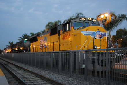 Union Pacific 4014 with 4014 in the Metrolink message board. I walked to the north side to see what was going on while I waited for the sun to rise this Sunday morning.