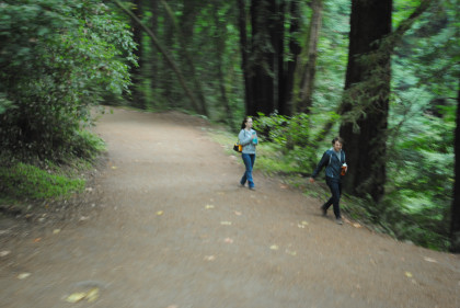 Hikers stopped to watch our train go by on the hiking train crossing.