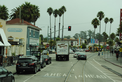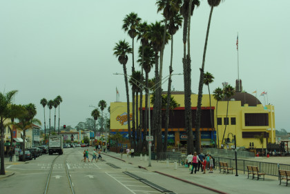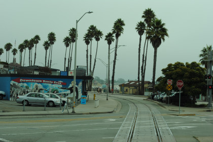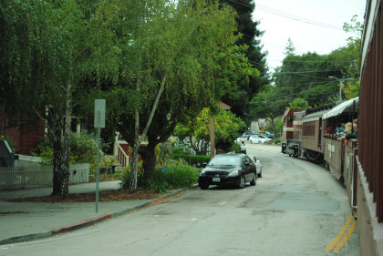 The train pulled into the boarding area and stopped. I helped my mother into the open car then I rode in the last seat on the train so I could take pictures as we headed down to the Santa Cruz Boardwalk.