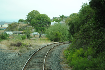 My mother, Nancy, on the Santa Cruz, Big Trees and Pacific Railroad.