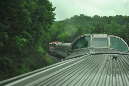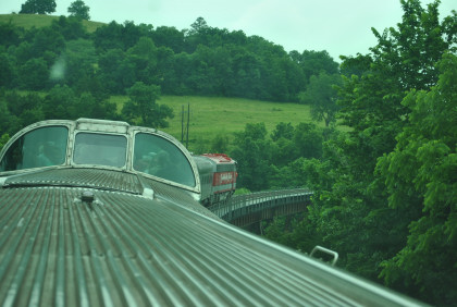 The view looking out of the back of the dome car.