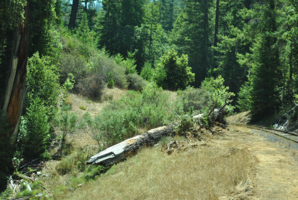 Passing a pile of new ties before going through Soda Spring, where we had climbed 400 feet in the last five miles.