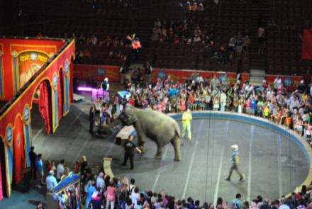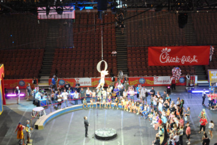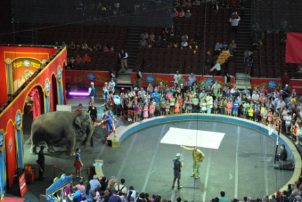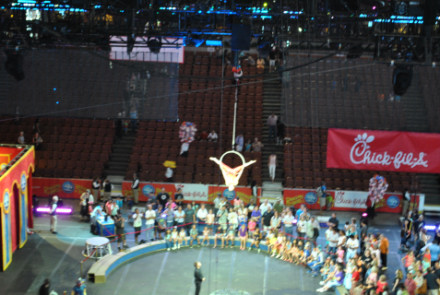Finally an Asian Elephant painted two pictures while a clown tried to paint a pair, which finished the Pre-Circus Experience. Now I would take a fifteen minute break before the Main Events started and I was able to watch the setting up that takes occurs before the Main Event.