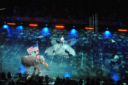 Ringmaster Johnathan Lee Iverson sang "The Star Spangled Banner", after which the Circus Parade began.