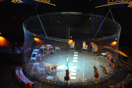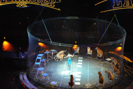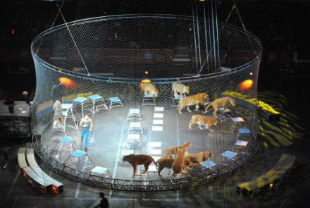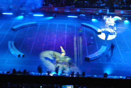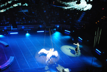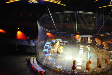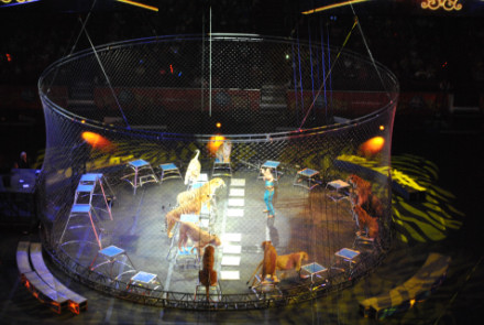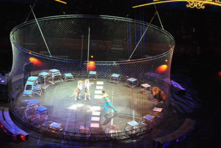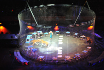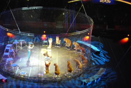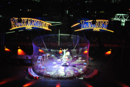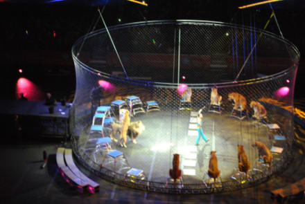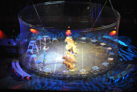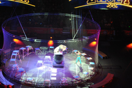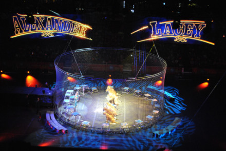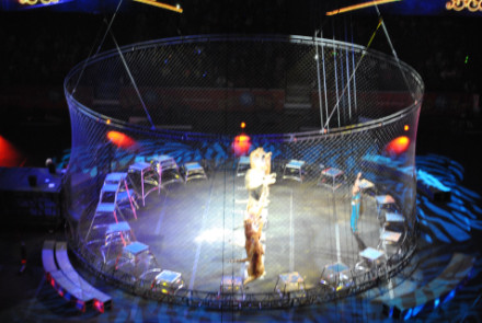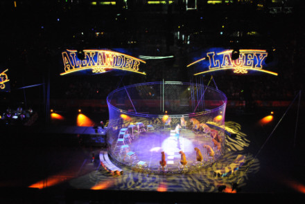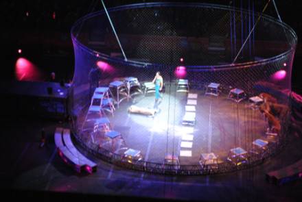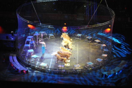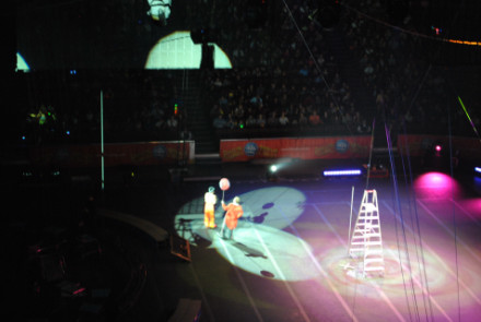 Two of the Ringling Bros. Clown Alley did a gag with a ladder and ball on stick. The next act was Alexander Lacey with his big cats that includes lions and tigers.