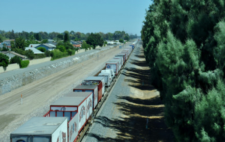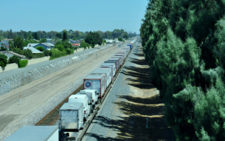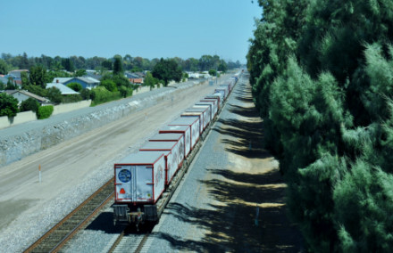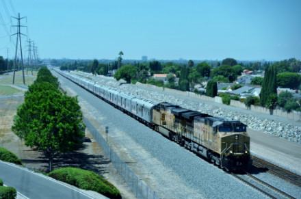 Now we waited with Winston and AC Adam calling with updates from Trainorders.com. First one was "According to the radio conversation I just heard, they are ready to go and awaiting a light". That meant he was following Pacific Surfliner 774. Next "They just squealed around the curve at CP Maple in Orange at 2:17 PM, with UP units". The final one was "Update 2:20 about to roll through Tustin, lined in at El Toro to wait for 7 according to the DS".