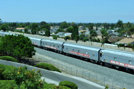 I called AC Adam and he posted "According to Mudrock, RBB&B Circus Train passed at Yale Ave in Irvine at 2:32PM." We returned to the Walker house very satisfied then I went home to relax before tonight's Orange County Railroad Historical Society meeting. It was a very good day in my life and next Monday, we would catch the circus train coming northbound.