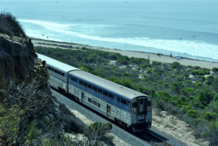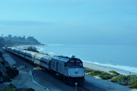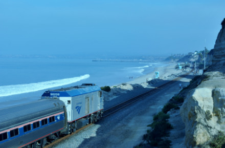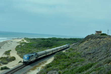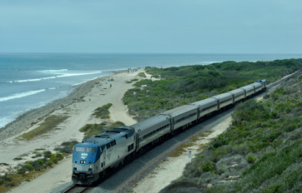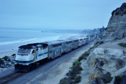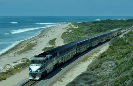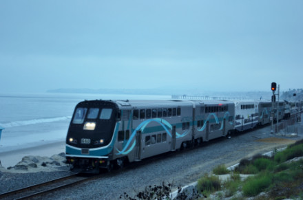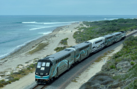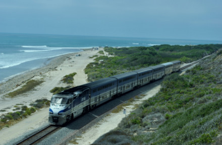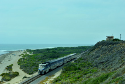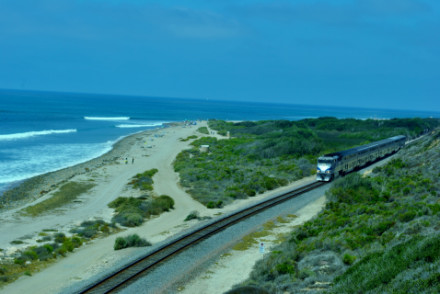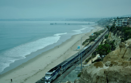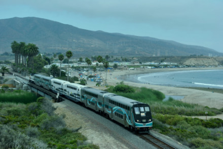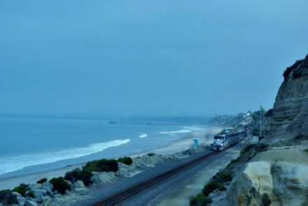 Pacific Surfliner 769. Someone posted on Trainorders.com "Just heard from SD Dispatcher and it sounds like a 7pm departure like the M-SDGBAR out of SD. Bummer. I was hoping to go out on the pier to get it. Maybe things will change I will keep everyone posted if I hear anymore. I see it now picking up more cars out of SD and it has 2 UP units that it came down with and 2 BNSF units. So it will be lead by a BNSF engine".