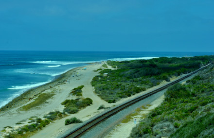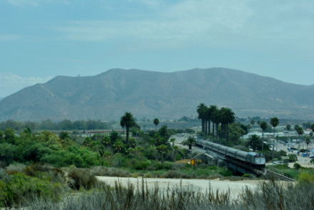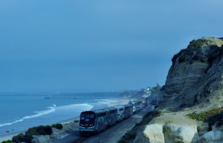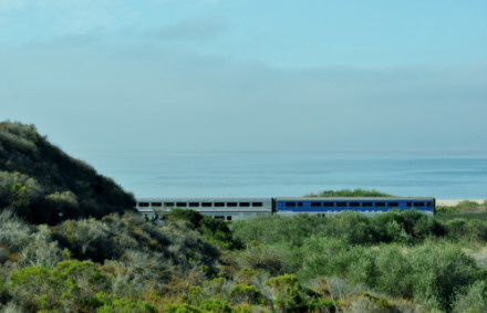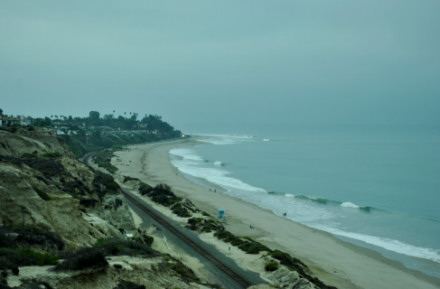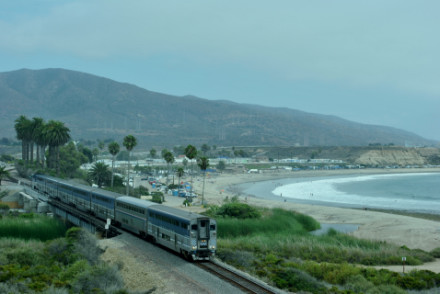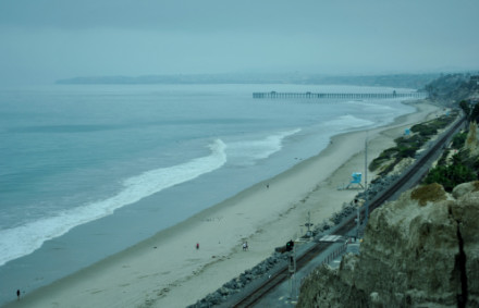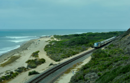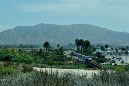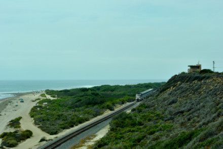 Pacific Surfliner 573 crossed San Onofre Creek at Trestles Beach, then Mark called said it went by him on Miramar Hill.