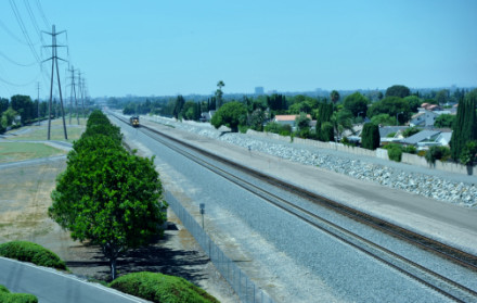 That morning I rode to Solana Beach, watched some television and had lunch before driving to the Winston Walker's home in Tustin where his daughter Christy and I walked to the Yale Avenue bridge over Metrolink's San Diego Subdivision. Once we arrived, we saw a headlight coming our way.