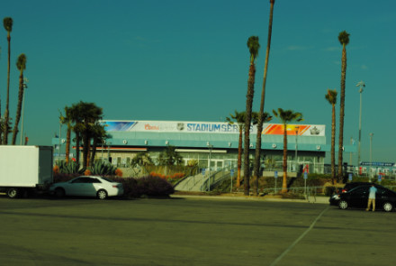 Downtown Los Angeles. I then walked up Stadium Way to the road into Dodger Stadium and this is where I came upon a locked gate. I saw the first car in line only had three passengers and asked if I could join them. They said yes so we then talked baseball stadiums, concerts and Kiss Concerts that we had seen. At 3:00 PM the gate was opened and after they paid, we drove after they up into the Dodger stadium parking lot and parked. I thanked them and said my goodbyes and headed off to find the gate to enter the park.