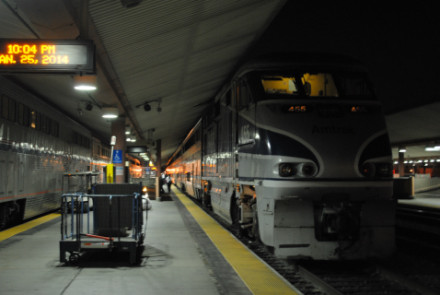 Pacific Surfliner 2796 which I then boarded. Our 11:00 PM special departure was held by station services for late-running buses. We finally got the green light to leave at 11:44 PM, and left LAUPT at 11:47 PM. Station stops were brief and 43 minutes later I was detraining at Santa Ana.