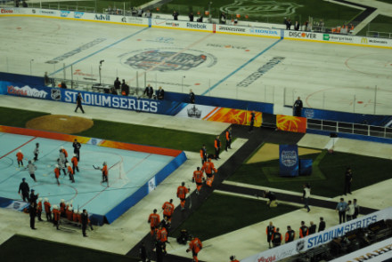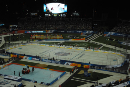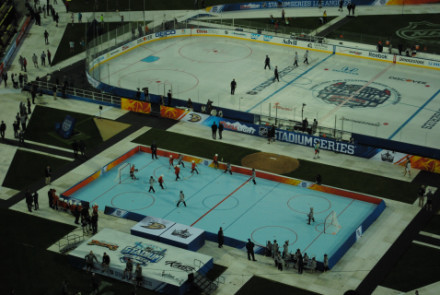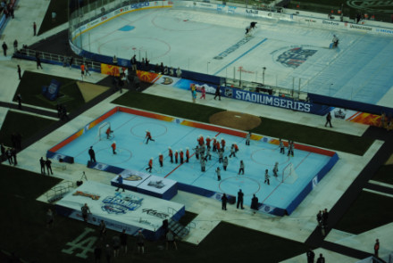 The warmest temperature at the opening face-off for an outdoor regular season game was 51 degrees Fahrenheit at Heinz Field in Pittsburgh for the 2011 Bridgestone Winter Classic between the Pittsburgh Penguins and the Washington Capitals. We wiped out that warmest record today with a game start temperature of 65 degrees tonight.
