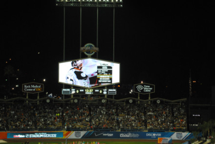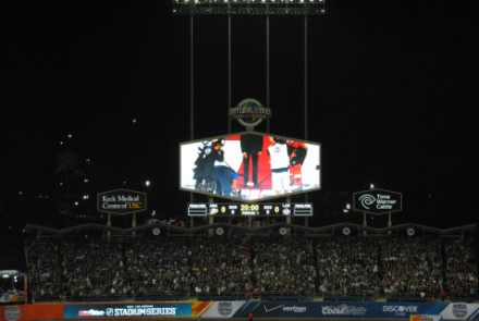 Next Vin Scully and Bob Miller welcomed us all to the 2014 Stadium Series at Dodger Stadium tonight.
